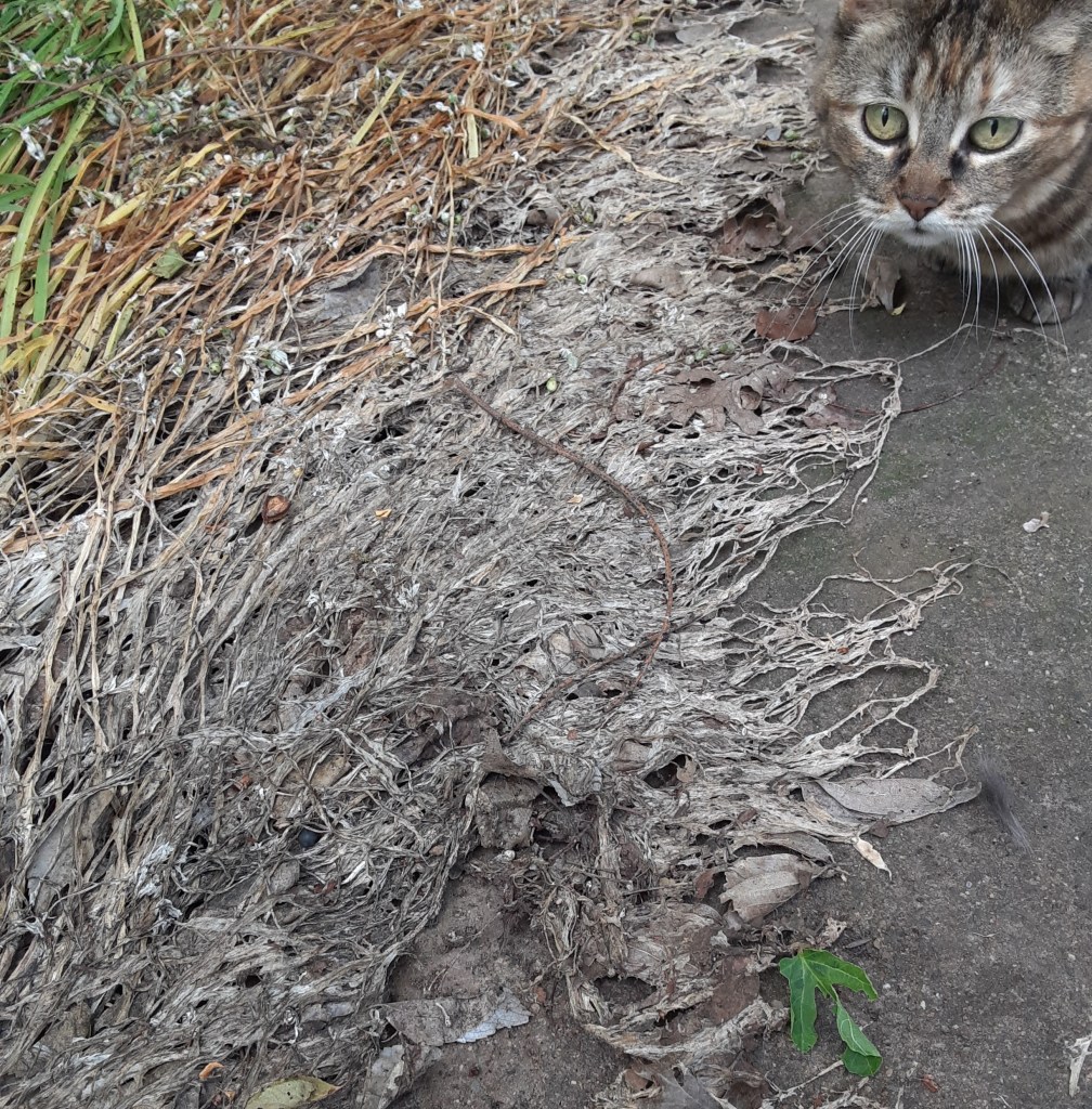 My cat greeted me, and I fed her again. I stared at the pint jar on my dining table. “What am I going to do with you?” The tiaratum stayed hidden under the leaves we’d thrown at her from my daughter’s backyard.