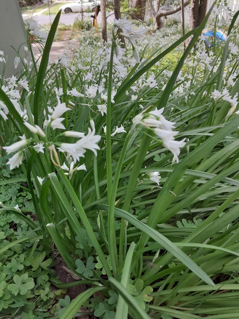 Until this year, I was successful removing them in a timely manner. I never had a chance to see their display of delicate and beautiful light green and white flowers. I did not witness the seed pods, their means of propagation, so I don’t know how they proliferated throughout my property, but here they are.